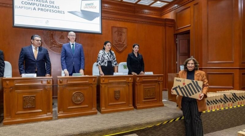 - El rector de la UAEMéx, Carlos Eduardo Barrera Díaz, presidió la 5° Entrega de computadoras portátiles a profesores de tiempo completo, medio tiempo, técnicos académicos y de asignatura.