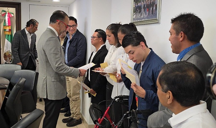 Metepec, Estado de México. . Para reconocer su esfuerzo, dedicación y empeño, que los llevó a subir al pódium de los Juegos Paranacionales CONADE 2024, autoridades de Metepec cumplieron con el compromiso de otorgar estímulos económicos a los paratletas del municipio, Ángel Salas Aguilar, Sofía Ortega Ortiz, Mauricio Tapia González y Regina Rebollo Pérez.