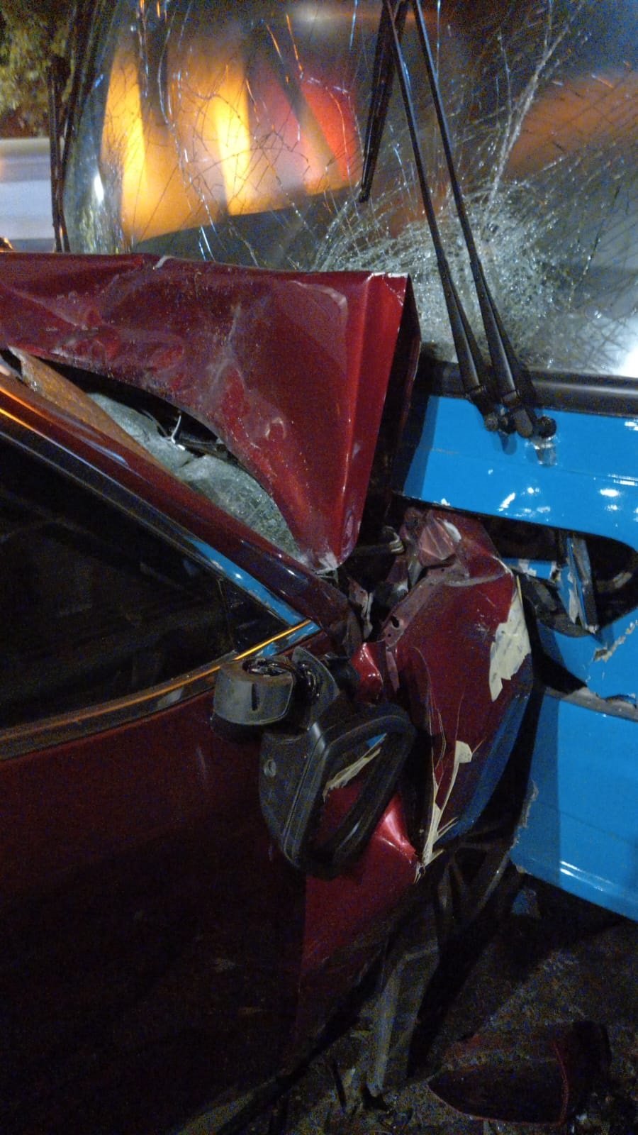 El percance ocurrió cerca de las 05:30 horas de este sábado 09 de noviembre, cuando el autobús económico 10 de servicio ordinario circulaba en dirección Quebrada en el puente Juan Pablo II, entre las estaciones Las Flores Zacuatitla y San Francisco, e impactó de frente con una camioneta roja placas MML-104-A que circulaba en sentido contrario.