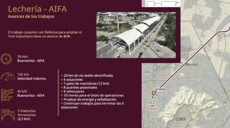 TOLUCA, Estado de México. – La construcción del Tren Suburbano Lechería–AIFA reporta un avance del 80 por ciento, con este proyecto de movilidad se mejora la comunicación entre el Estado de México y la Ciudad de México, además impulsa la infraestructura aeroportuaria del centro del país.