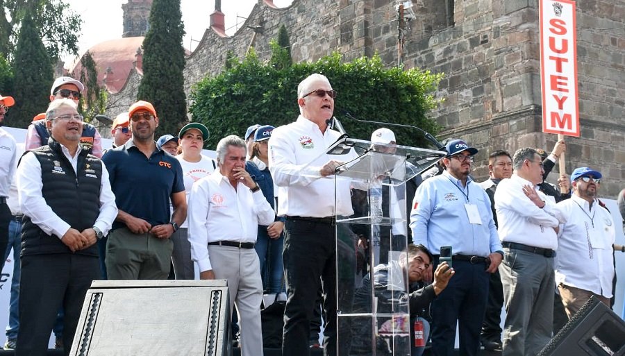 En su discurso, Herminio Cahue Calderón, secretario general del SUTEYM, destacó que el 1° de mayo es una fecha para refrendar la unidad que permea al interior de la clase trabajadora del Estado de México y enfatizó que quienes integran esta fuerza laboral, deben ser vistos como mujeres y hombres con necesidades y no cómo números o máquinas.