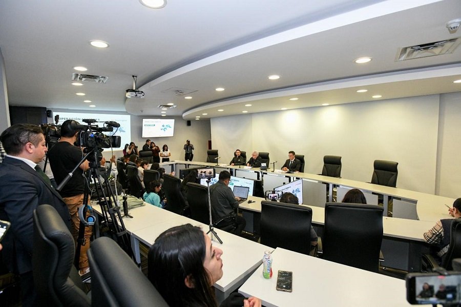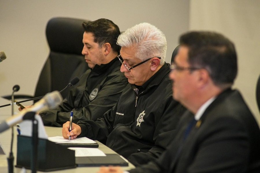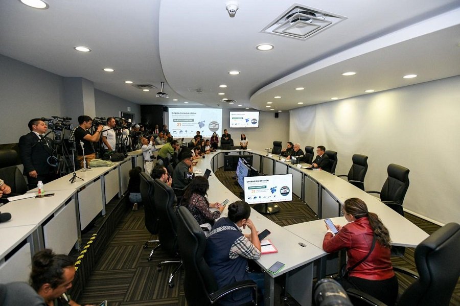 - En conferencia de prensa el Secretario de Seguridad, Cristóbal Castañeda Camarillo presenta los resultados de estas acciones, acompañado por el Presidente del Tribunal de Justicia, Magistrado Fernando Díaz Juárez y el Vicefiscal Martín Marín Colín.