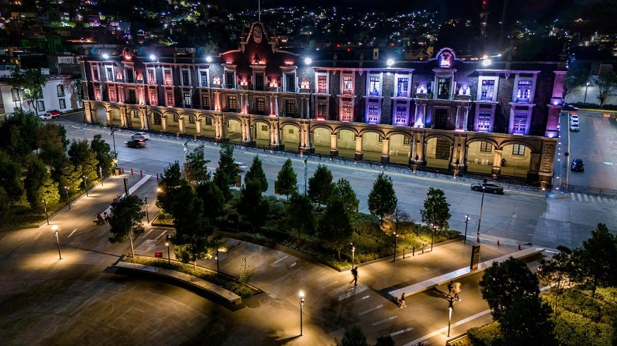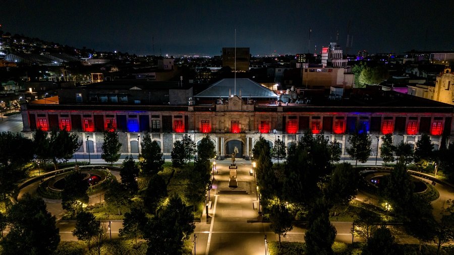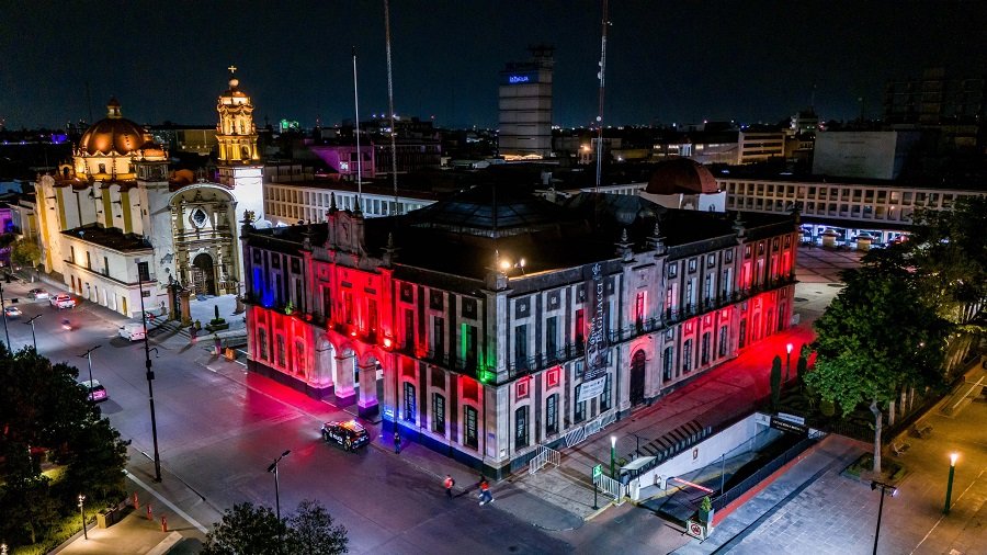 El Palacio Municipal, el Palacio del gobierno estatal, el Palacio de Justicia y el emblemático Cosmovitral se han iluminado con luces y estandartes escarlatas, para sumarse al entusiasmo que une a la capital de las oportunidades y el progreso.