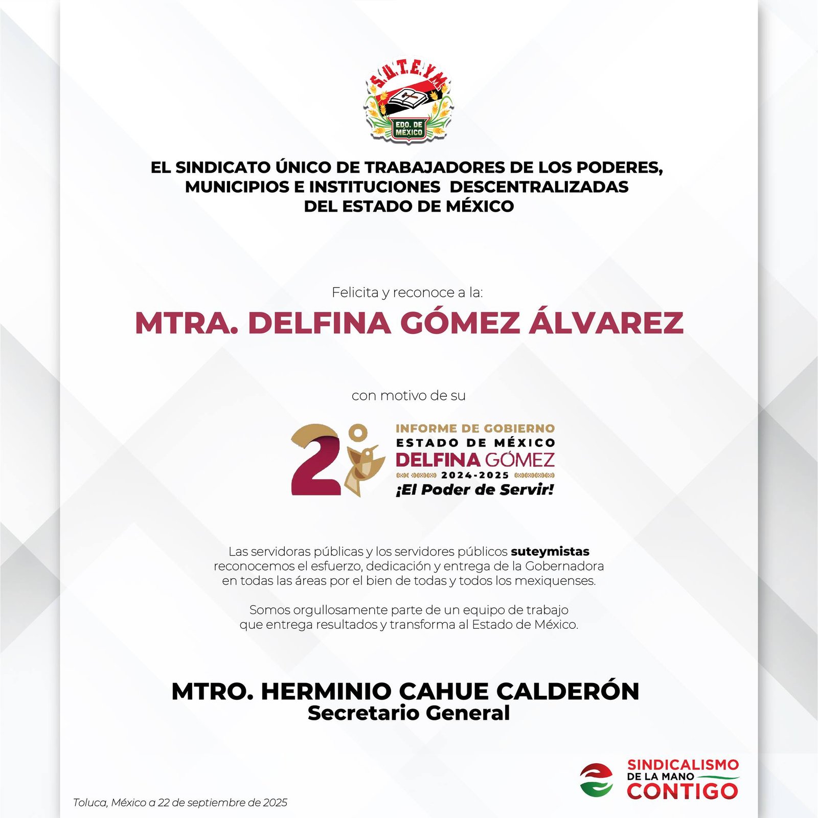 EstatalLo Mejor de Nuevo EnlaceMunicipiosSindicatos Felicidades Mtra. Delfina Gómez Álvarez 22 septiembre, 2025 Nuevo Enlace Felicidades Mtra. Delfina Gómez Álvarez