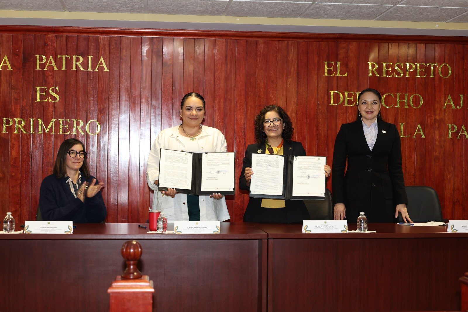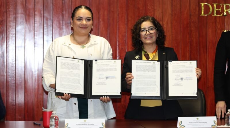 Amecameca, Méx. – . La rectora de la Universidad Autónoma del Estado de México (UAEMéx), Martha Patricia Zarza Delgado, y la titular de la Secretaría del Medio Ambiente y Desarrollo Sostenible de la entidad, Alhely Rubio Arronis, firmaron un convenio general de participación, que atestiguó la presidenta municipal de Amecameca, Ivette Topete García.