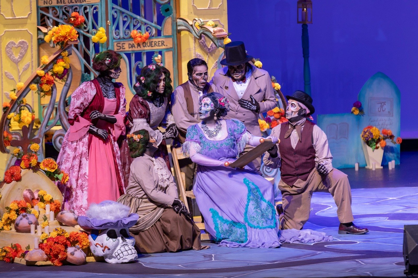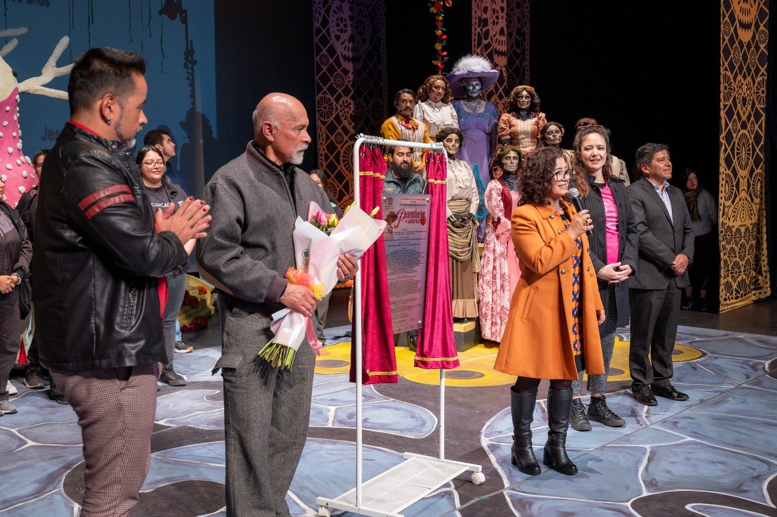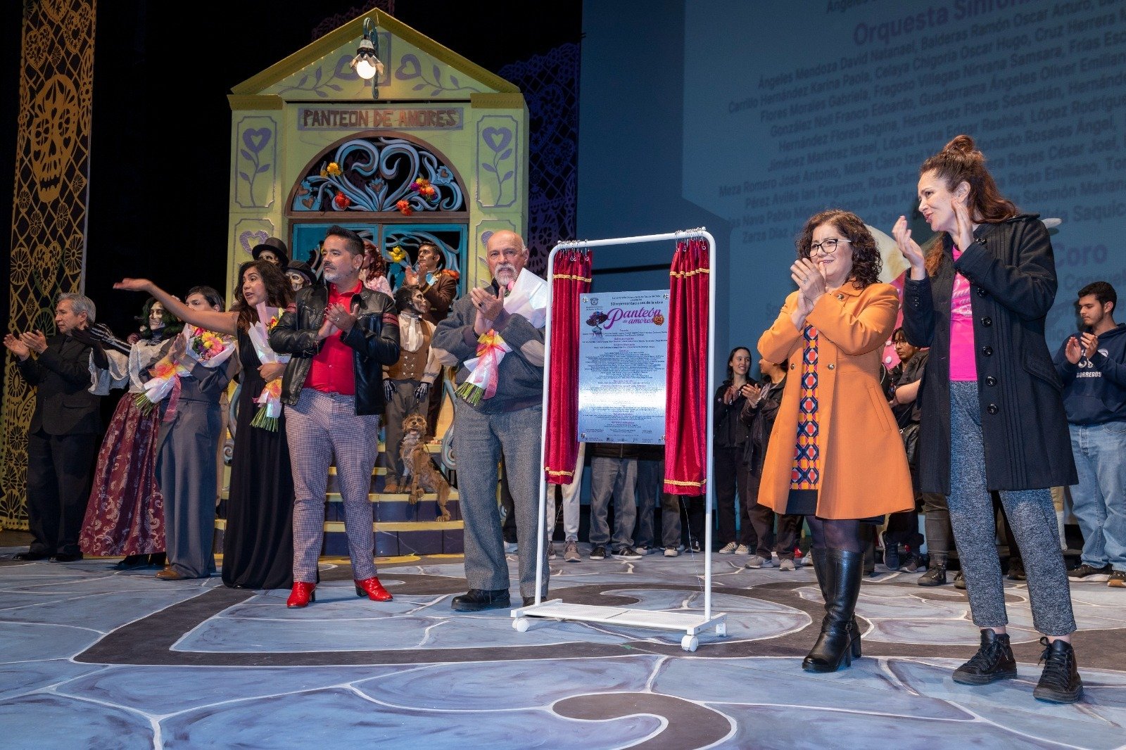 Toluca, Méx. – Panteón de Amores, puesta en escena de la Universidad Autónoma del Estado de México (UAEMéx) conmemorativa al Día de Muertos, concluyó su temporada 2025 y celebró su presentación número 50, en el Teatro Morelos de la capital mexiquense, donde se dieron cita la rectora Martha Patricia Zarza Delgado, el escritor Jesús Angulo y el director Juan Carlos Embriz Gonzaga.