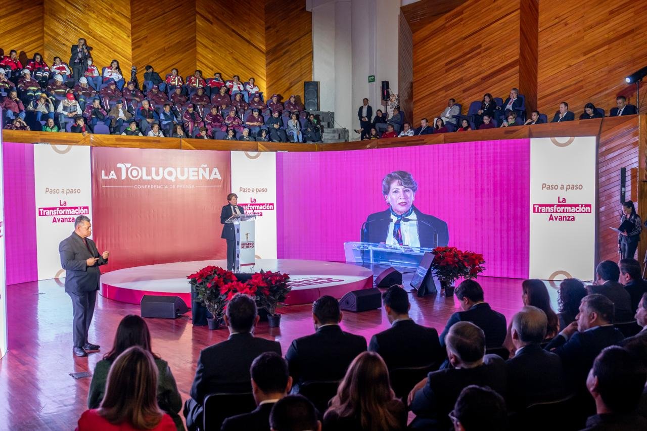 Durante su intervención, la gobernadora Delfina Gómez calificó el trabajo municipal como un ejercicio democrático que refleja la vocación de servicio. Señaló que Toluca vive una transformación alineada con los principios de la Cuarta Transformación y destacó que la ciudad comienza a superar retos históricos como la deuda pública, la presión sobre el suministro de agua, el deterioro vial y la falta de oportunidades para la juventud.