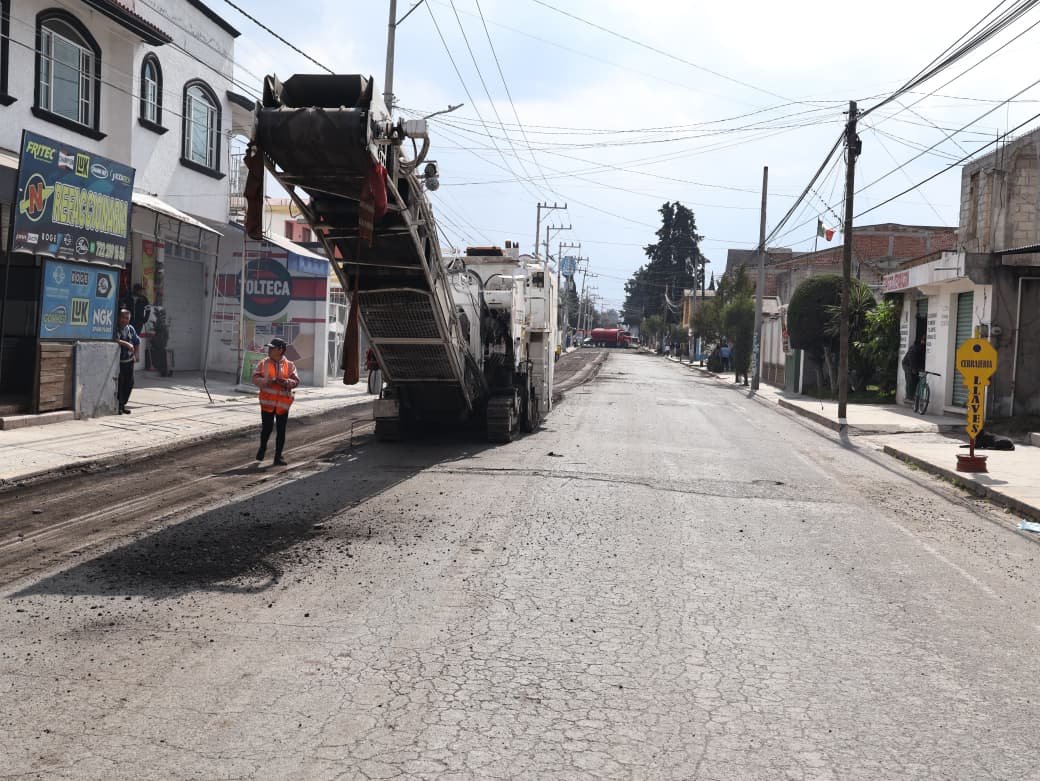 • Realizan por instrucción del alcalde Ricardo Moreno trabajos en más de 18 mil m2 de la calle Ignacio López Rayón en San Pablo Autopan