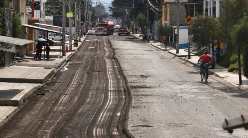 Repavimenta Gobierno municipal vialidades en San Pablo Autopan