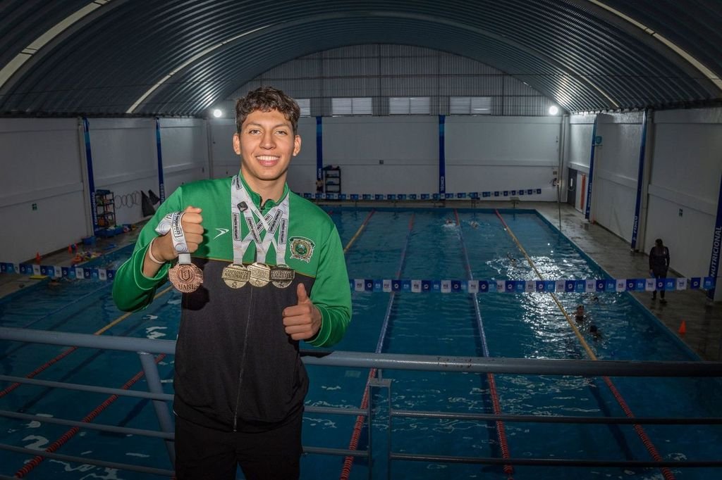- El estudiante de la Facultad de Ingeniería brilló en el Nacional ANUIES 2025 en Jalisco, donde se subió al podio en 400 y 1500 metros libres, 200 metros dorso y 200 combinado, consolidando el proyecto deportivo que inició desde la infancia.