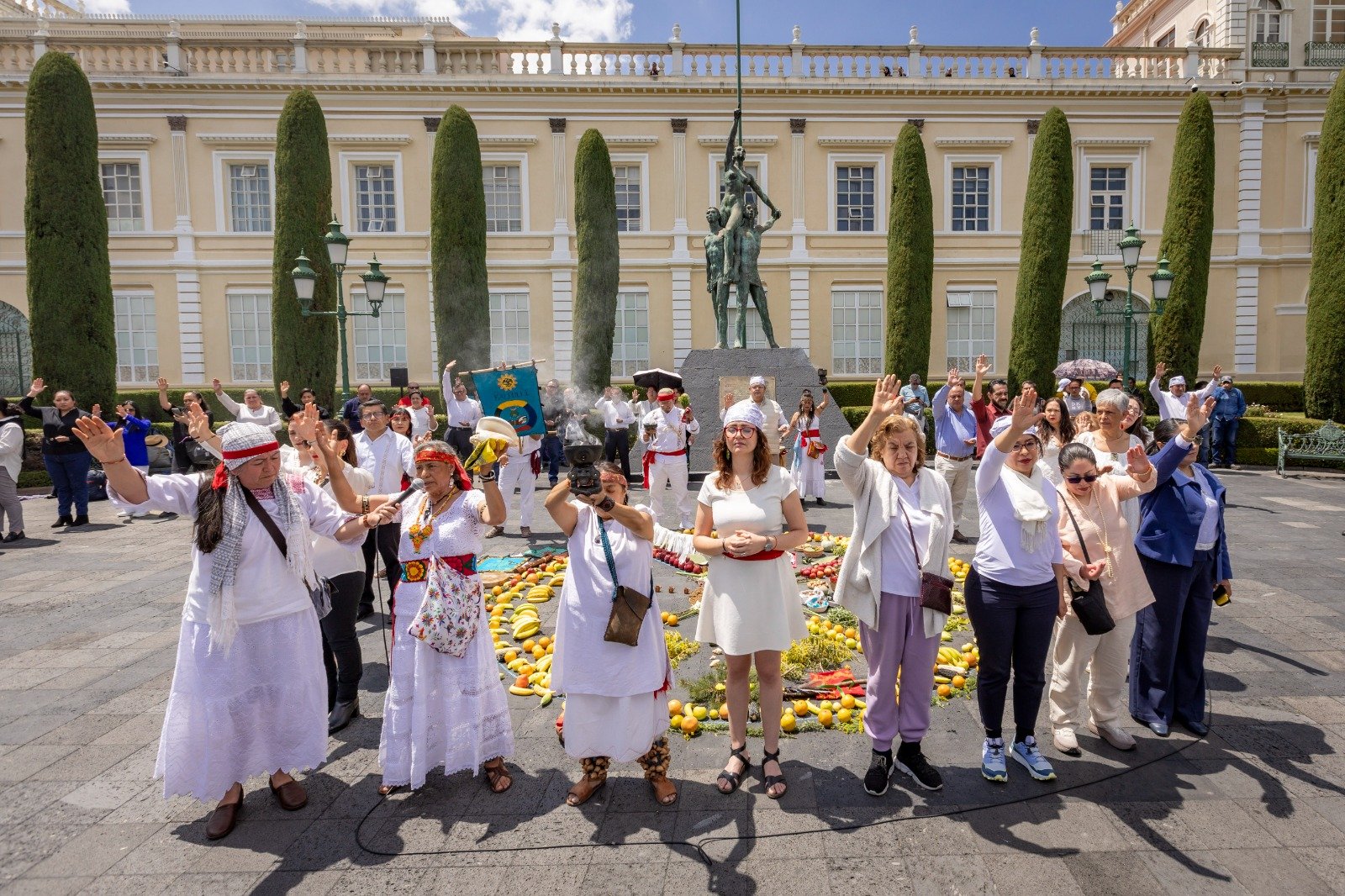 La ceremonia incluyó también la colocación de una ofrenda ceremonial que representa la tierra y la fertilidad; la bienvenida a las autoridades con los cuatro elementos —agua, fuego, aire y tierra—, así como la apertura de los rumbos, acto que invoca la energía de los puntos cardinales.