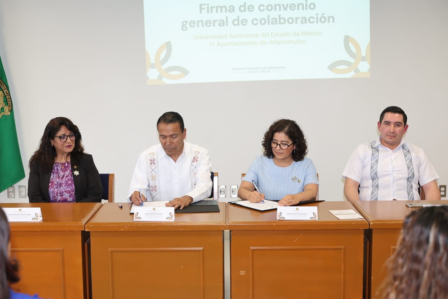 Atlacomulco, Méx. -.Con el objetivo de fortalecer los lazos de colaboración en beneficio de la comunidad universitaria de la región norte del Estado de México, la Universidad Autónoma del Estado de México (UAEMéx) y el Ayuntamiento de Atlacomulco firmaron un convenio general de colaboración.