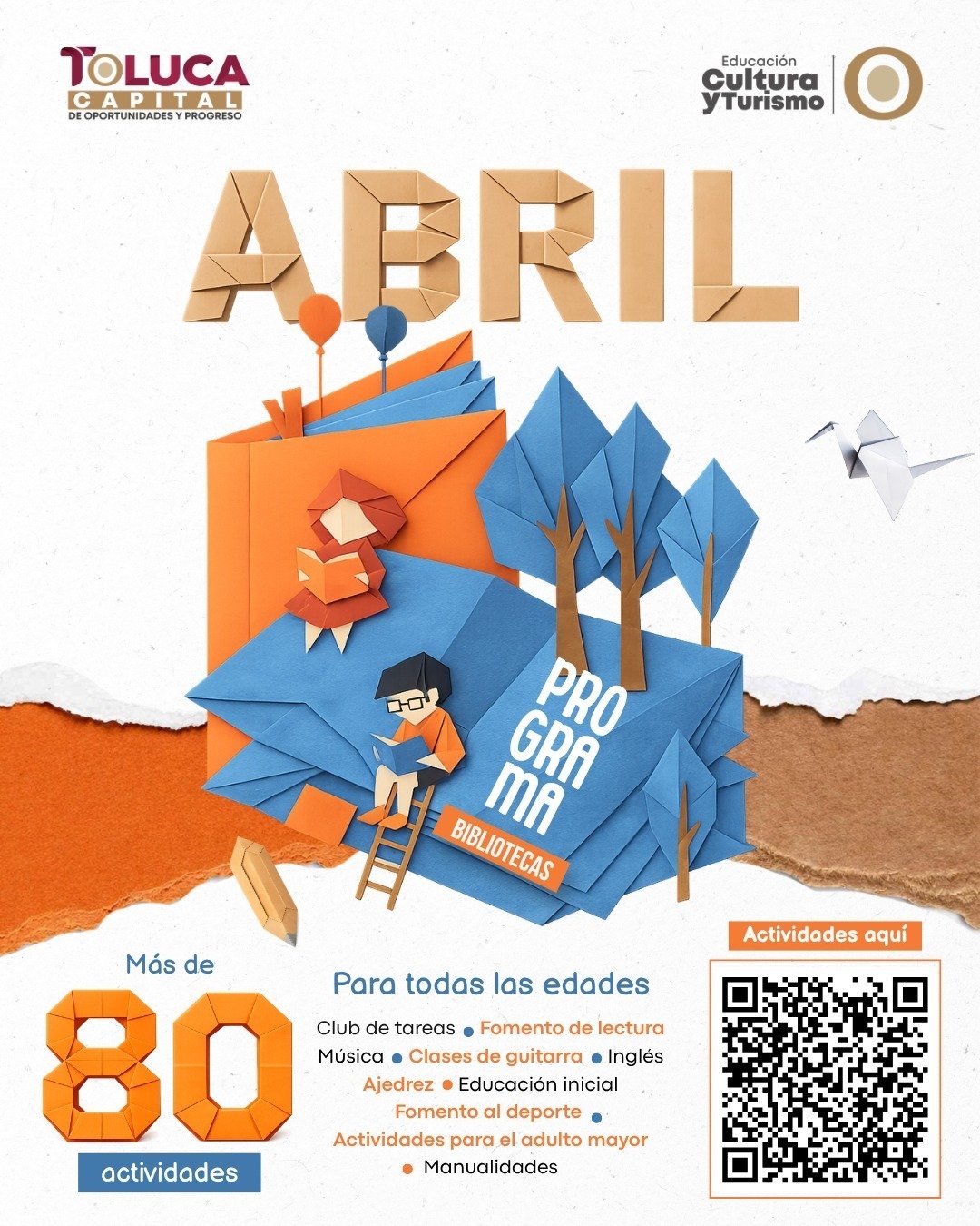 Con este tipo de iniciativas, el Gobierno Municipal de Toluca reafirma su compromiso con el desarrollo integral de la ciudadanía como pilar fundamental para la transformación social, acercando herramientas que contribuyan al bienestar y crecimiento de la población. Para conocer las actividades en las bibliotecas ubicadas en todo el territorio municipal, se invita a seguir las redes sociales oficiales de la Dirección General de Educación, Cultura y Turismo.