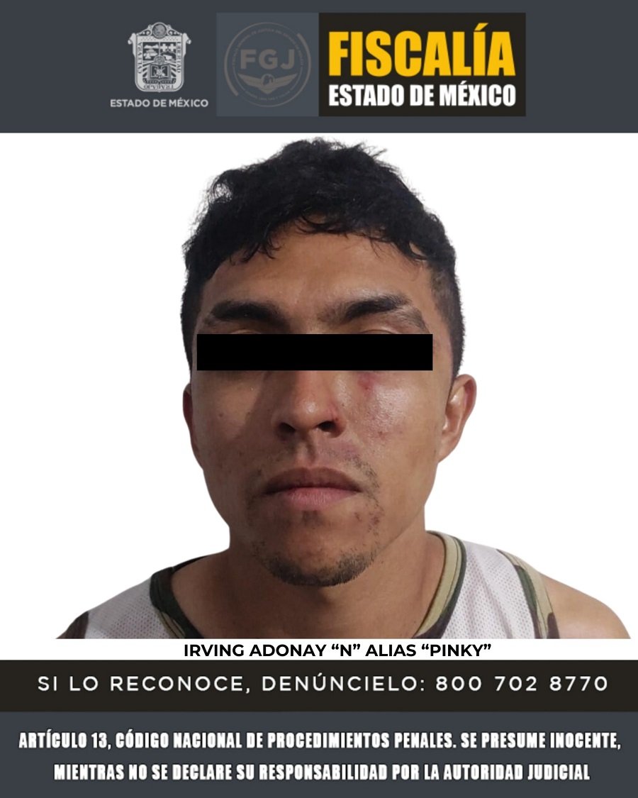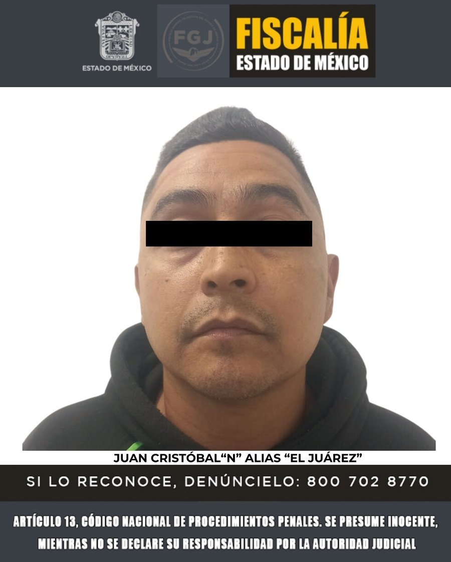 El mandamiento judicial por este delito, por el cual se podría imponer hasta una pena de carácter vitalicia, será cumplimentado en contra de Juan Carlos “N” alias “Remington”, Juan Cristóbal “N” alias “Juárez”, Christian Uriel “N” alias “El Christian” e Irvin Adonay “N” alias “Pinky”; estos sujetos se encuentran recluidos en el Centro Penitenciario y de Reinserción Social de Cuautitlán por diversos delitos flagrantes. En tanto que elementos de la Fiscalía realizan actos de investigación con el fin de localizar y detener a Christopher “N” alias “El Padrino”, sujeto que se considera evadido de la acción de la justicia.