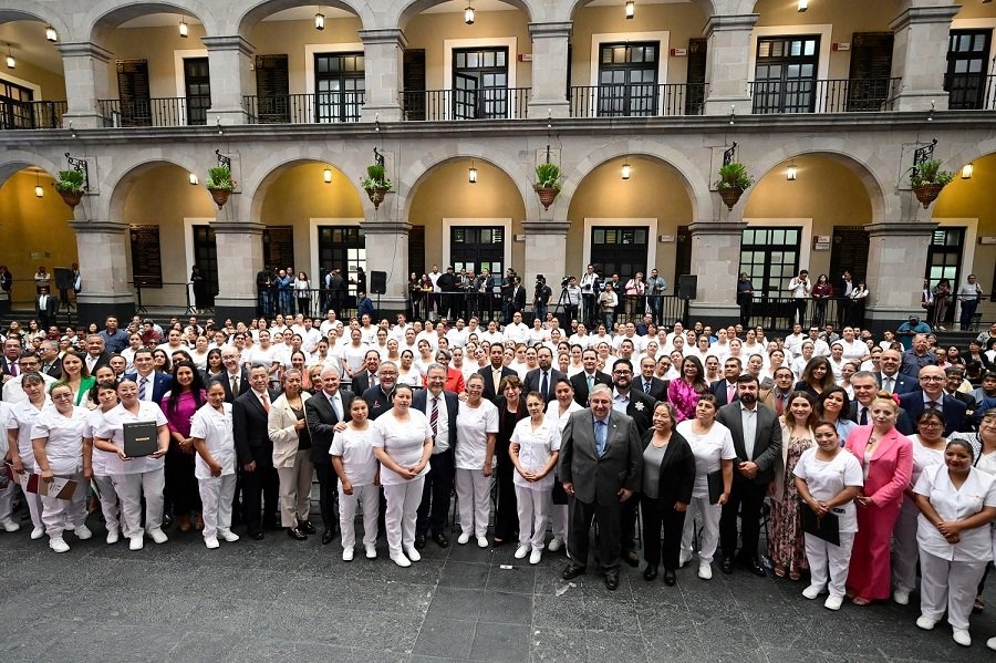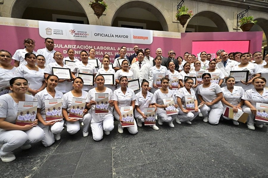 “Hoy saldamos una deuda más, iniciamos la regularización laboral de las enfermeras y enfermeros de nuestra institución, que es el ISSEMyM, gracias a un detallado trabajado en equipo se logra la liberación de 100 plazas para la basificación del personal de enfermería contratado bajo la modalidad de eventual, vamos a beneficiar a sus familias, con el ánimo genuino, pero, sobre todo, con el derecho de vivir con tranquilidad y estabilidad en su trabajo”, refirió la Gobernadora Delfina Gómez Álvarez.
