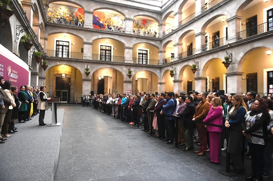 Acompañada por los integrantes del Gabinete estatal, la Maestra Delfina Gómez Álvarez agradeció a las personas servidoras públicas que forman parte de su administración, apoyar las medidas de austeridad, lo que ha permitido emprender acciones que favorecen al pueblo mexiquense.