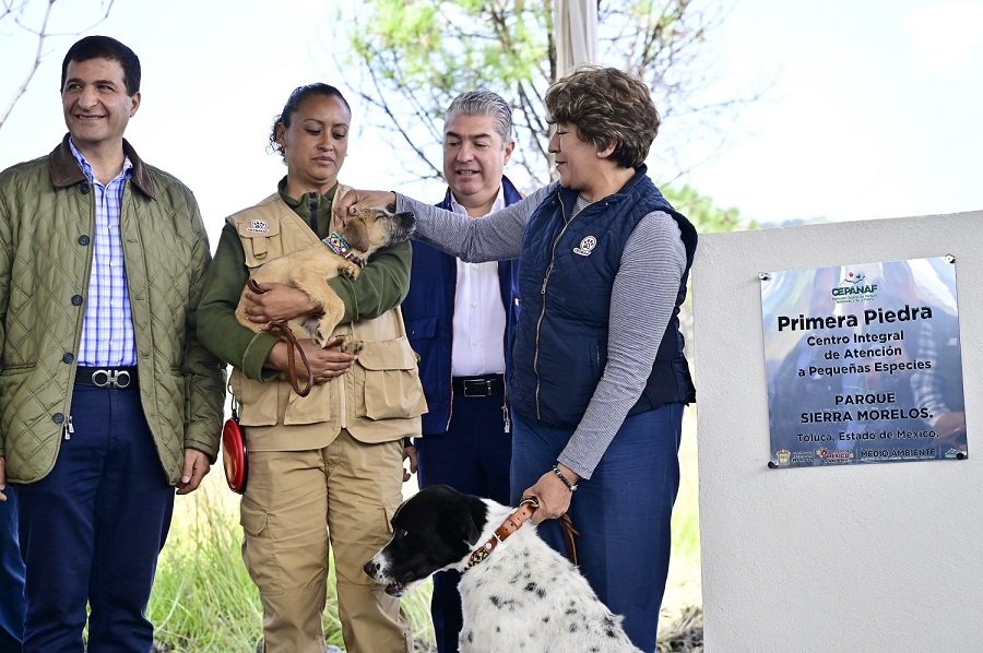 Toluca, Estado de México.- Con el fin de transformar la vida de los seres sintientes que por años permanecieron en el abandono y en situación de maltrato, la Gobernadora Delfina Gómez Álvarez colocó la primera piedra del Centro Integral de Atención a Pequeñas Especies «Parque Sierra Morelos», que se suma al de Zinacantepec y Texcoco.