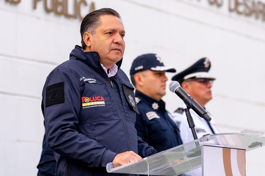 Toluca, Estado de México, – En la Academia de Policía, el Presidente Municipal de Toluca, Ricardo Moreno Bastida, llevó a cabo el pase de lista y una inspección al personal de Seguridad y Protección Ciudadana, así como la revisión del estado físico y mecánico del parque vehicular.