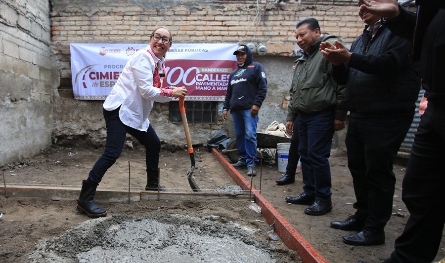Ecatepec, Méx.,Como parte de las acciones en los primeros 100 días de gobierno, la presidenta municipal Azucena Cisneros Coss arrancó en el pueblo de San Pedro Xalostoc, el programa “Cimientos de Esperanza”, que contempla pavimentar un total de 100 calles con trabajo comunitario y una inversión de 34 millones de pesos.
