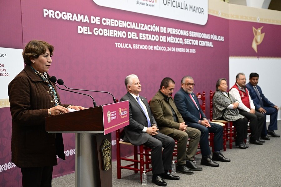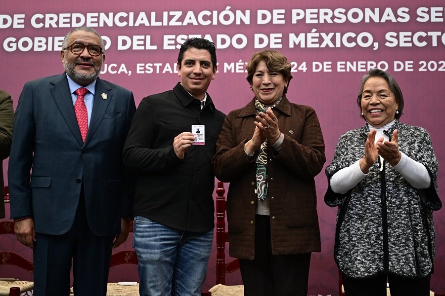 En el evento de arranque que tuvo lugar en Palacio de Gobierno el 24 de enero pasado, la Gobernadora Delfina Gómez Álvarez comenzó la entrega de credenciales a servidoras y servidores públicos, y dio a conocer la elaboración, componentes y proceso de entrega de estos documentos.