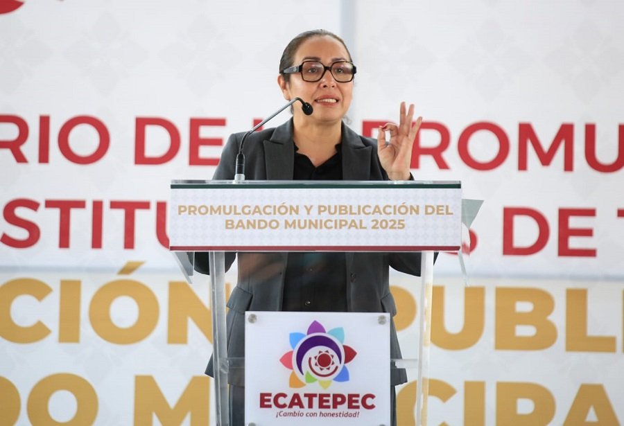 Ecatepec, Méx., . Al promulgar el Bando Municipal 2025 en la explanada cívica, ante más de mil personas, la alcaldesa Azucena Cisneros Coss afirmó que el nuevo marco jurídico es resultado de un trabajo colectivo y está conformado por cinco Bandos para la Gobernanza y Paz Social para Ecatepec.