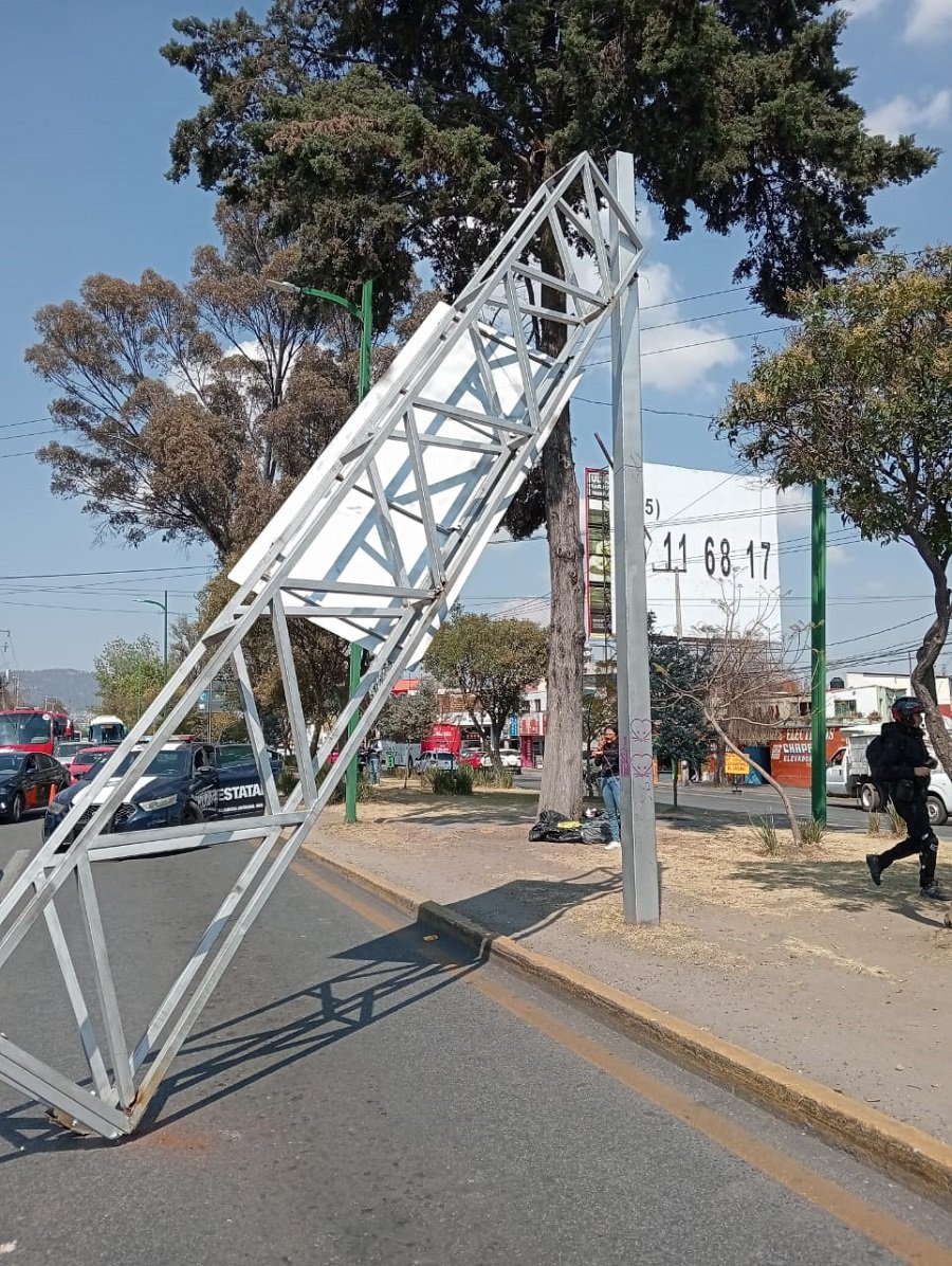 Toluca, Estado de México, – Elementos de la Dirección General de Seguridad y Protección así como de la Coordinación Municipal de Protección Civil y Bomberos atendieron de forma inmediata la caída de una estructura de metal en avenida Pino Suárez, la cual ya fue retirada sin que se presentaran ningún tipo de afectaciones, por lo que la circulación ya se reactivó en su normalidad.