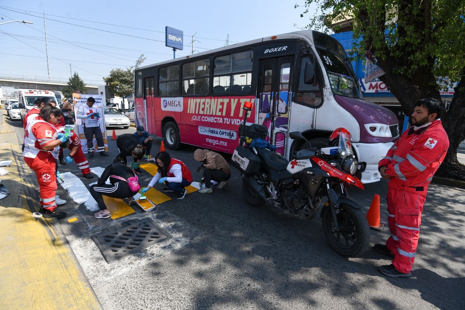Agradeció el apoyo de la empresa COMEX, que dona pintura reflejante de primera calidad en apoyo de este Proyecto de Cruz Roja Mexicana en el que se señalizarán cruces de escolares, topes y otros elementos del mobiliario urbano para reducir el riesgo de accidentes viales.