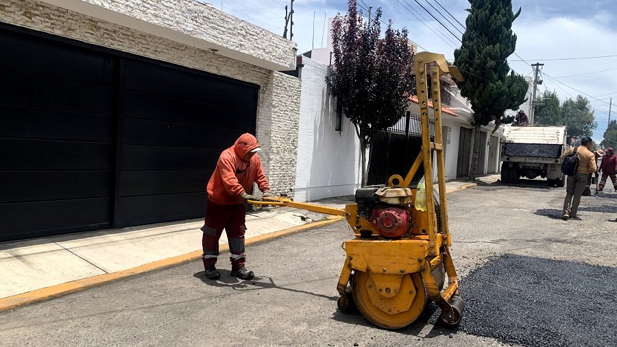 Mientras que en la calle 16 de Septiembre, en Santa Ana Tlapaltitlán se repararon más de 40 baches con ocho toneladas de mezcla asfáltica en caliente y 200 litros de emulsión.