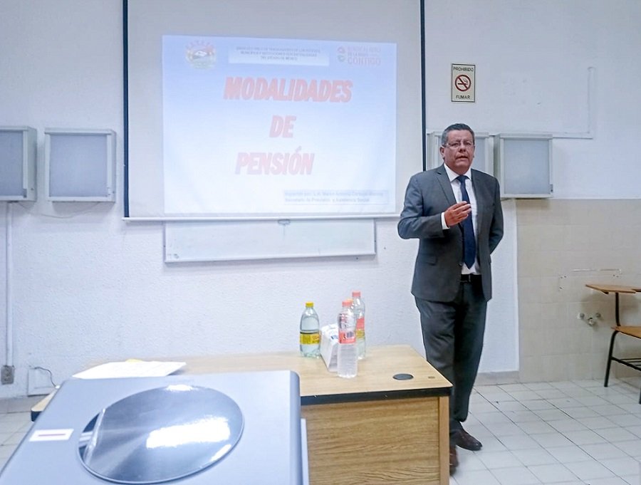 En este sentido, Marco Antonio Carbajal Monroy, secretario de Previsión y Asistencia Social, impartió el taller Modalidades de pensión del ISSEMYM a 23 afiliados de la delegación de Coordinación General de Servicios Periciales, representada por Sergio Escobar Domínguez.