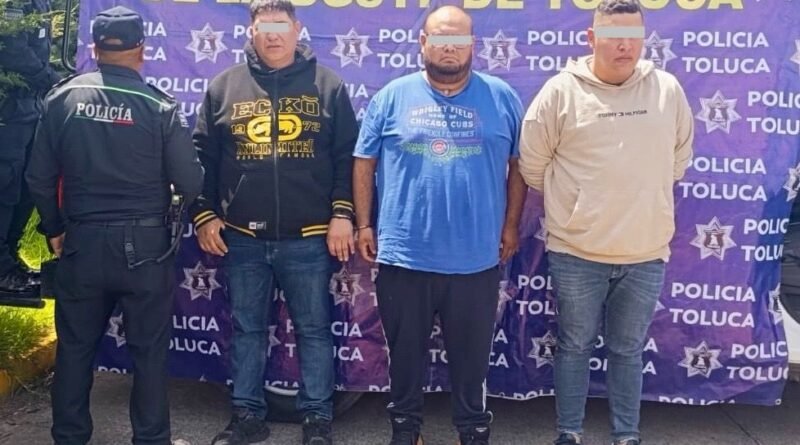 Toluca, Estado de México, – Como resultado de una denuncia ciudadana y la oportuna intervención de elementos de la Dirección General de Seguridad y Protección de Toluca, tres hombres de nacionalidad colombiana fueron detenidos por su presunta participación en un esquema de extorsión conocido como “gota a gota”.