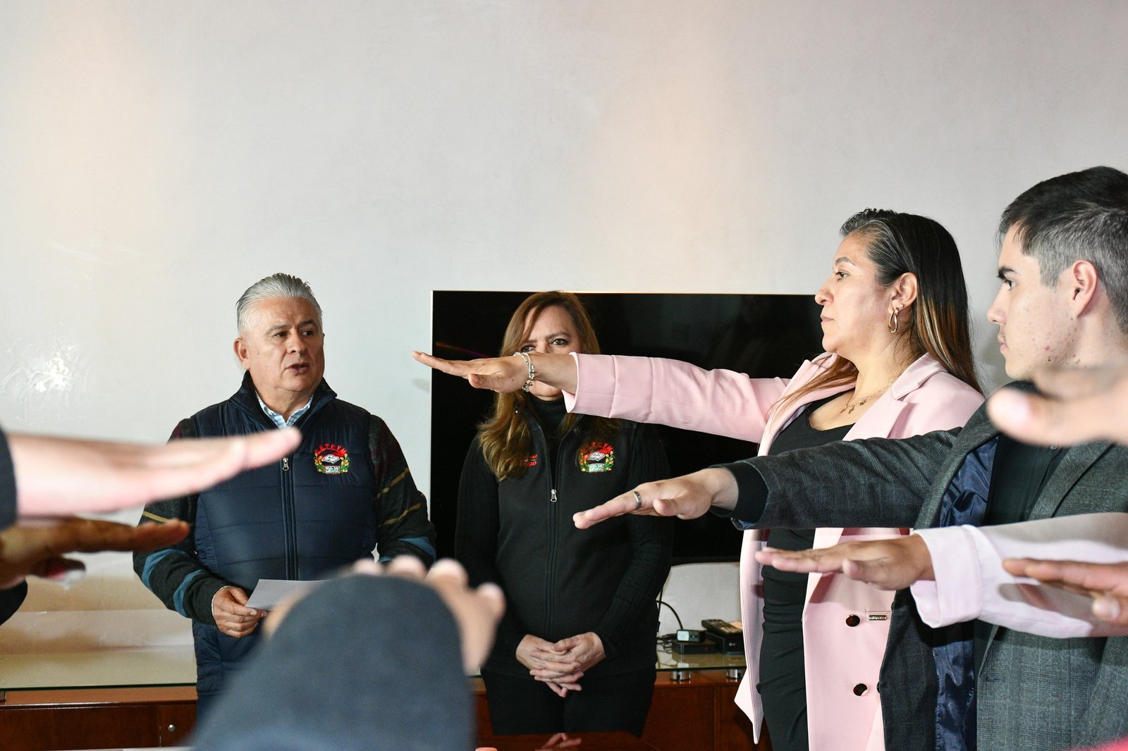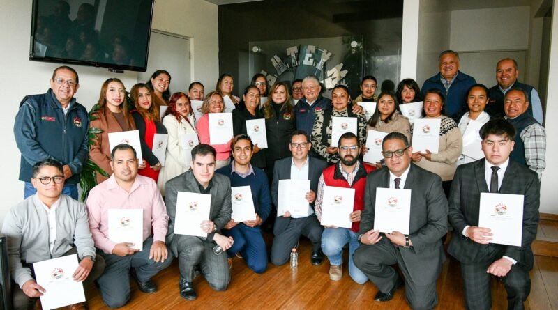 Toluca, Estado de México, En la Casa del Servidor Público Mexiquense, Herminio Cahue Calderón, secretario general del Sindicato Único de Trabajadores de los Poderes, Municipios e Instituciones Descentralizadas del Estado de México (Suteym), entregó oficios de presentación y tomó protesta a mujeres y hombres que se incorporan al servicio público con plazas basificadas.