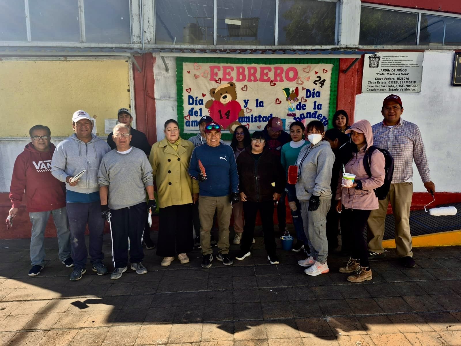 Asimismo, en Santa María de las Rosas, las y los vecinos pintaron guarniciones y de cuatro módulos de la valla de seguridad del acceso principal de la Primaria Leyes de Reforma, además del deshierbe, limpieza de guarniciones y banquetas perimetrales de la escuela.