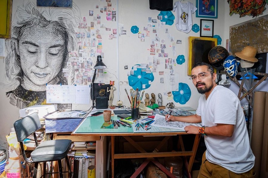 El egresado de la Licenciatura en Artes Plásticas encuentra en esta disciplina una gran pasión, pues considera que al momento de hacer arte, se adquiere una capacidad creadora y de invención al plasmar nuevas ideas o cosas, además, destacó que una obra permite a las y los artistas expresarse a partir de una idea u objeto, con la motivación de transmitir y generar vínculos con la persona espectadora.