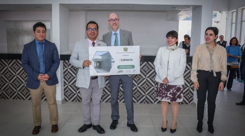 Acolman, Méx; En beneficio de una comunidad conformada por más de 900 estudiantes, académicos y trabajadores administrativos, el rector de la Universidad Autónoma del Estado de México (UAEMéx), Carlos Eduardo Barrera Díaz, entregó la cancha de fútbol rápido, dos canchas de usos múltiples y la cafetería de la Unidad Académica Profesional Acolman.
