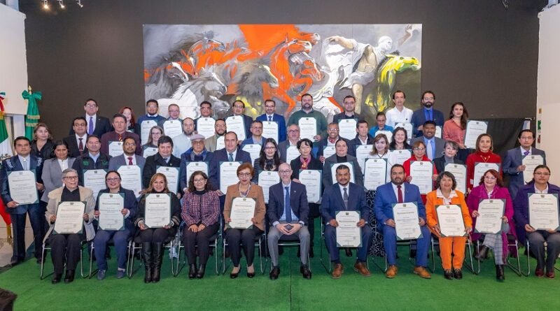 Toluca, Méx; Con el objetivo de fortalecer la generación de conocimiento científico y fomentar la innovación tecnológica con impacto positivo en la sociedad, la Universidad Autónoma del Estado de México (UAEMéx) llevó a cabo la entrega de reconocimientos al Profesorado de Tiempo Completo (PTC) que suben de nivel en el Sistema Nacional de Investigadoras e Investigadores (SNII) e Inventores, en el Museo Universitario “Leopoldo Flores”.