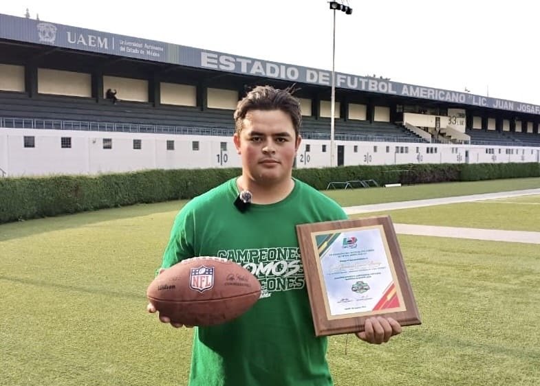 Toluca, Méx; Con apenas 21 años, José Armando García Arriaga, pateador de los Potros Salvajes de la Universidad Autónoma del Estado de México (UAEMéx), fue reconocido como Mejor Jugador Ofensivo de la Conferencia Nacional 2024 de la Organización Nacional Estudiantil de Futbol Americano (ONEFA), tras acumular 65 puntos, producto de 16 goles de campo y 17 puntos extra.