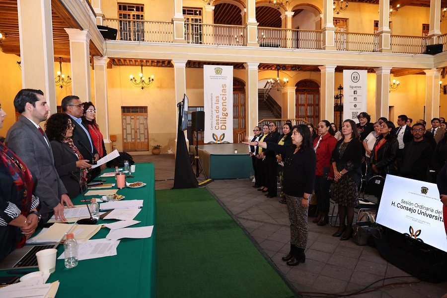 Durante esta sesión se tomó protesta, para el periodo 2025-2029, a las directoras de la Facultad de Antropología, Luz Alejandra Barranco Vera; del Centro Universitario UAEM Temascaltepec, Marcela Jaramillo Jaramillo, y del Centro Universitario UAEM Valle de Chalco, Elia Chamorro Vázquez.