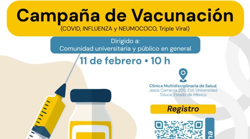 *Toluca, Méx. – La Clínica Multidisciplinaria de Salud (CMS) de la Universidad Autónoma del Estado de México (UAEMéx), dependiente de la Secretaría de Vinculación, Extensión y Promoción de la Empleabilidad, llevará a cabo una campaña de vacunación enfocada en la prevención de enfermedades comunes durante la temporada invernal.