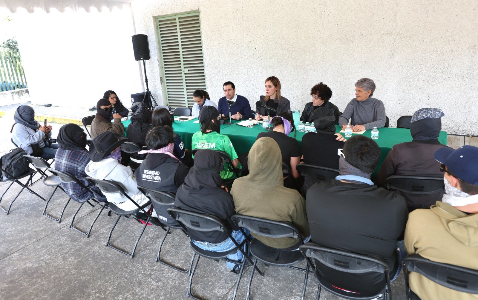 Toluca, Méx. – En seguimiento a los acuerdos generados el pasado viernes 31 de octubre, integrantes de la administración central de la Universidad Autónoma del Estado de México (UAEMéx) asistieron a una mesa de trabajo con el Enjambre Estudiantil Unificado (EEU) para acordar la entrega del Edificio Histórico de Rectoría.