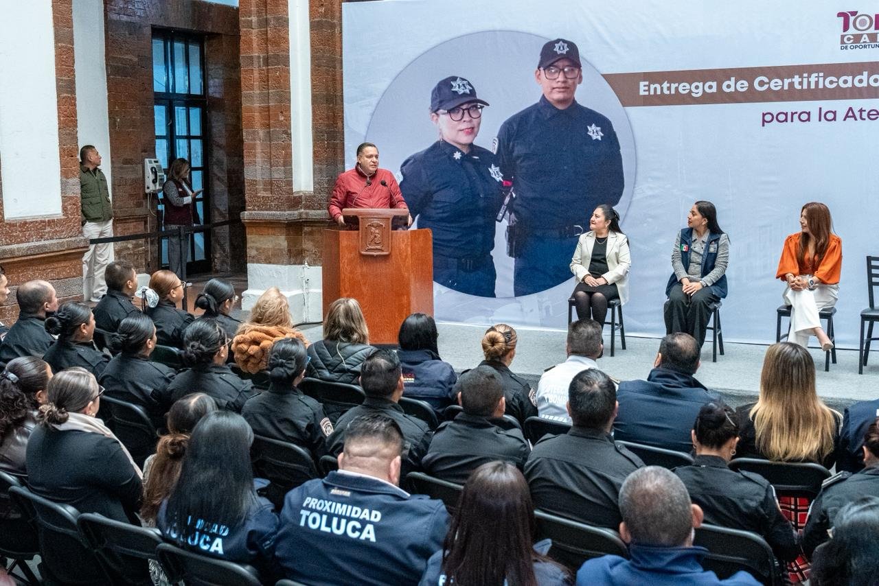 Toluca, Estado de México, – Toluca avanza con acciones para garantizar la protección, el acompañamiento y acceso a la justicia, así como una atención de calidad y calidez para todas las víctimas de violencia, pues cerca de 80 servidores públicos de primer contacto, encabezados por el Presidente Municipal, Ricardo Moreno, recibieron certificaciones en tres competencias y más de 140 recibieron talleres y cursos teórico-prácticos en temas como acoso sexual, violencia de género y estrategias de búsqueda de personas.